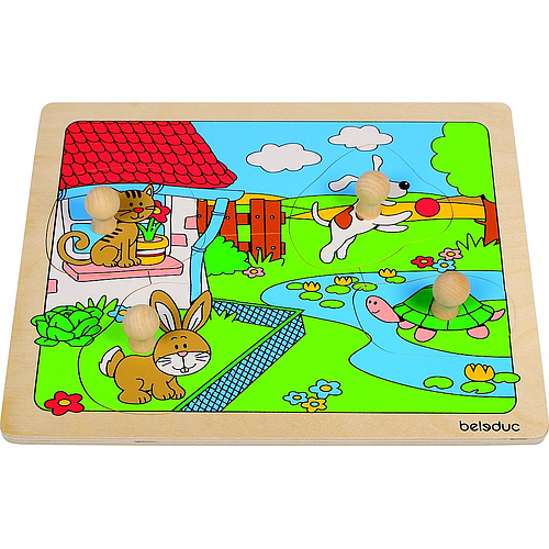 Un original rompecabezas en capas que muestra el proceso de crecimiento de la fresa. Las fichas están numeradas en la parte posterior para ayudar a los niños a armarlo.