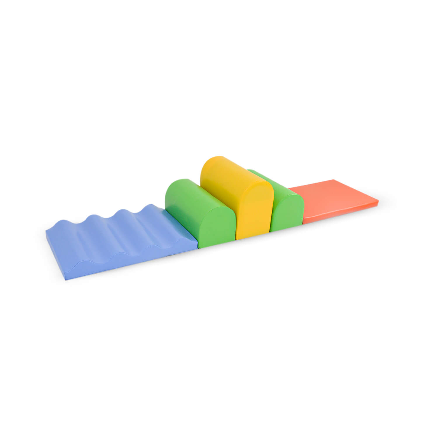 Original y colorido set de la gama Movilúdicos de Alegría que brinda a los niños experiencias sensoriales, motrices, emocionales y cognitivas, a partir del uso de su cuerpo. Ideal para espacios pequeños.