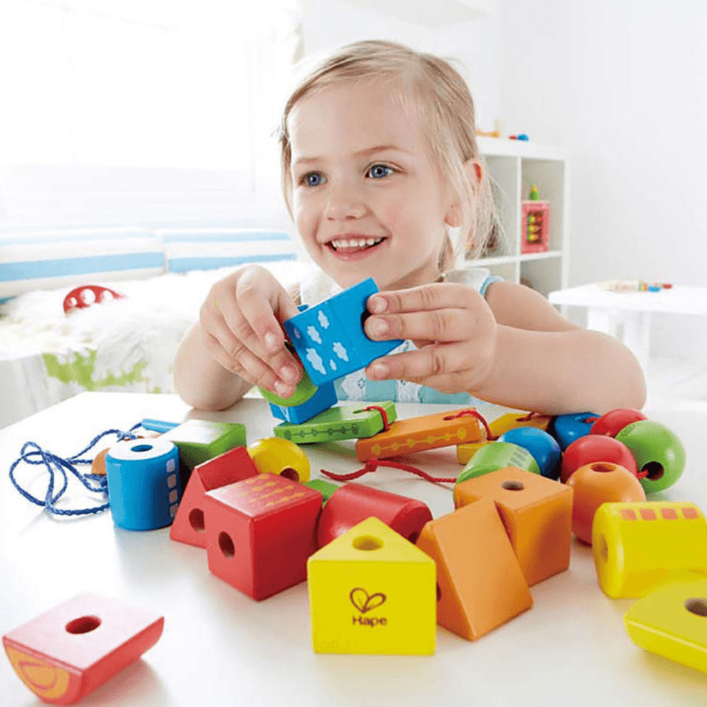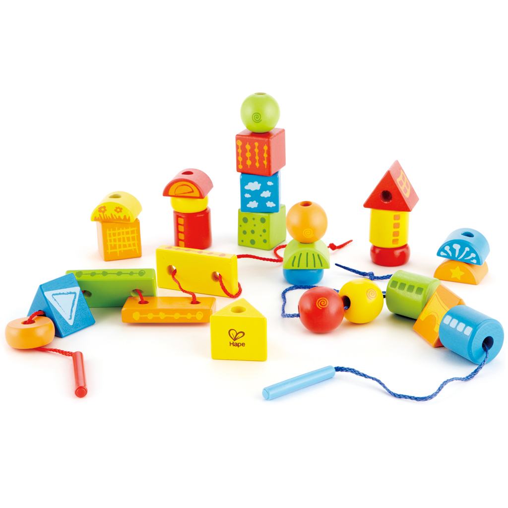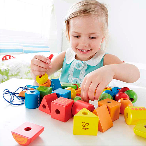 Con estas coloridas cuentas con formas puedes realizar creativas construcciones. Además, con ayuda del cordón y su robusta aguja podrás realizar pasados combinando formas y colores.